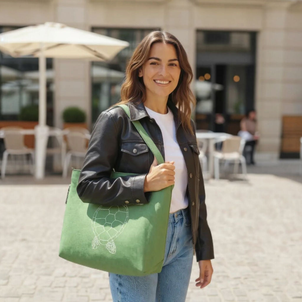 Duurzame tas Trendy Turtle draag jij met trots. Omdat je er stijlvol bij loopt én je trots bent op jouw bijdrage aan de maatschappij en ons duurzame doel The Great Bubble Barrier.